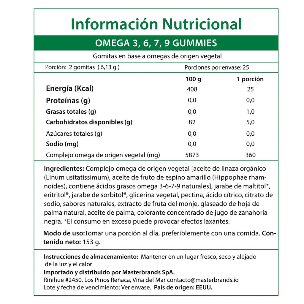Porción: 2 gomitas veganas = 360 mg de Omega-3-6-7-9
