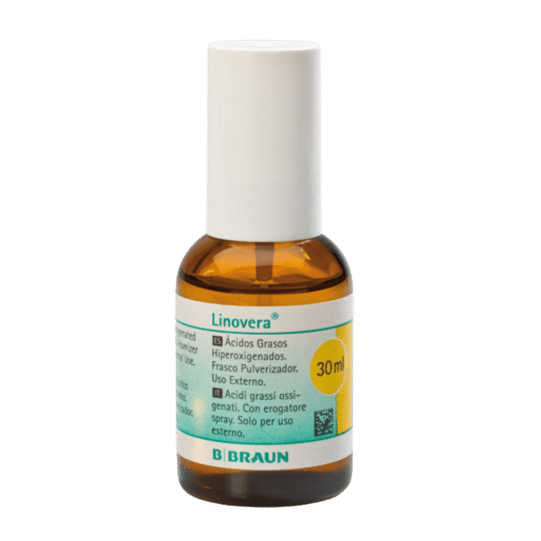 La emulsión Linovera 30mL es una solución profesional con ácidos grasos hiperoxigenados desarrollada por BBraun para el cuidado especializado de piel sensible y frágil. Ideal para profesionales de la salud y cuidado domiciliario que requieren protección cutánea avanzada.
