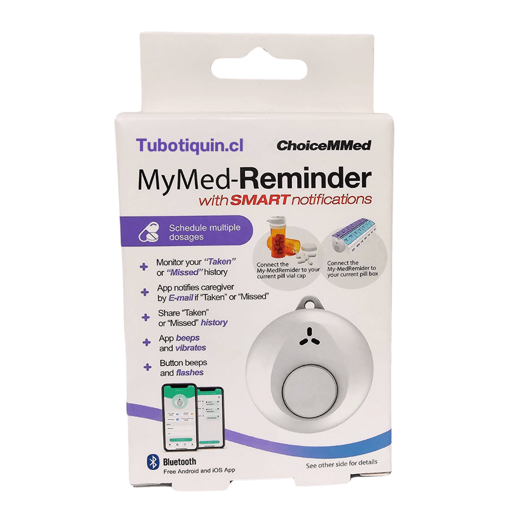 El MyMed-Reminder PR118 es un dispositivo de recordatorio de medicamentos que se fija al pastillero o frasco y avisa con sonido, vibración y luz LED en cada hora de toma programada. Si la dosis no se toma, envía una notificación automática al cuidador por email o app. Es la solución para familias que no pueden supervisar presencialmente a un adulto mayor con tratamiento crónico.